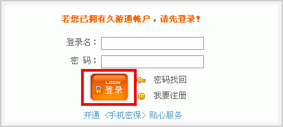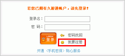 帐号注册 如果您还不是久游网用户,请选择“帐号注册”,点击“帐号注册”按钮,进入帐号注册页面。